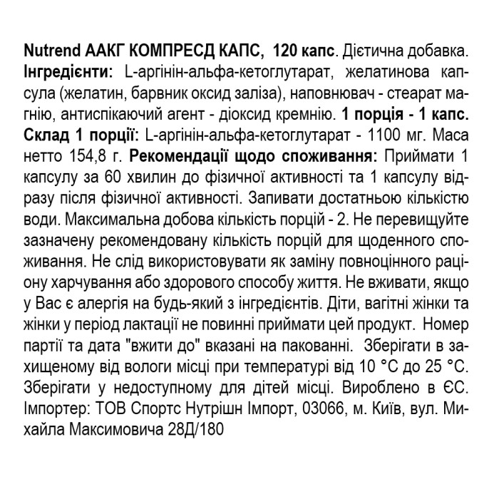 Nutrend AAKG Compressed – ваш надежный помощник в достижении спортивных целей. Попробуйте и ощутите разницу уже на первой тренировке!
