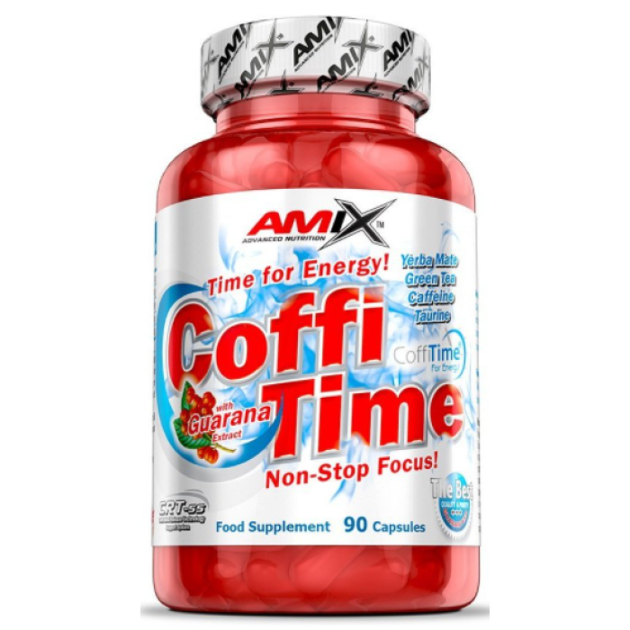 Amix CoffiTime - это мощная концентрированная формула энергии, которая содержит безводный кофеин, обогащенный экстрактами гуараны, зеленого чая, экстрактом Yerba Mate и таурина. Основное действующее вещество - кофеин стимулирует центральную нервную систему, увеличивает выброс адреналина, повышает работоспособность, выносливость и задерживает усталость. Повышает температуру тела и ускоряет обмен веществ, ускоряя обмен жиров. Защищает гликоген в мышцах и увеличивает выносливость.