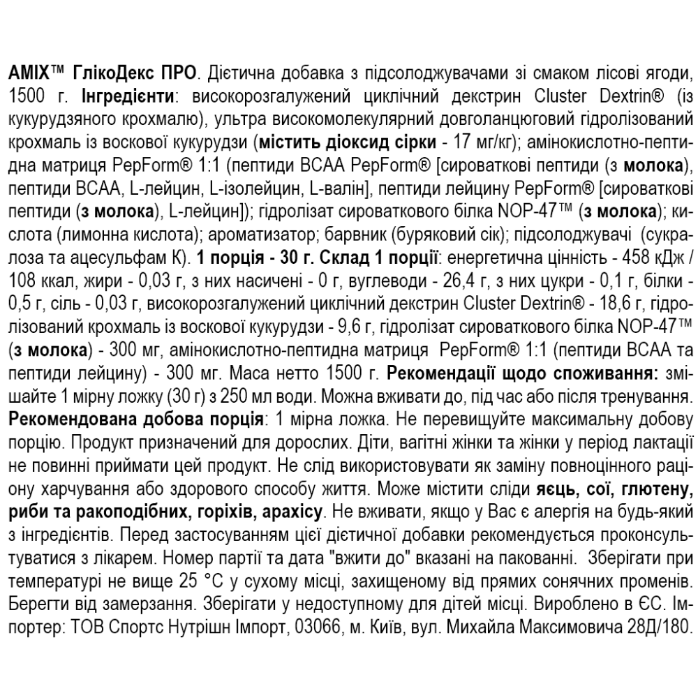 Крахмал восковой кукурузы содержит большое количество глюкозного полимера АМИЛОПЕКТИНА , имеет высокую молекулярную массу и чрезвычайно усваиваемый разветвленный полисахарид, а также быстро восстанавливает ваши энергетические запасы. В дополнение к этому крахмал восковой кукурузы в GlycodeX ® PRO имеет очень низкую осмолярность, что позволяет ему быстро и без усилий проникать в кровоток в неизменном виде.