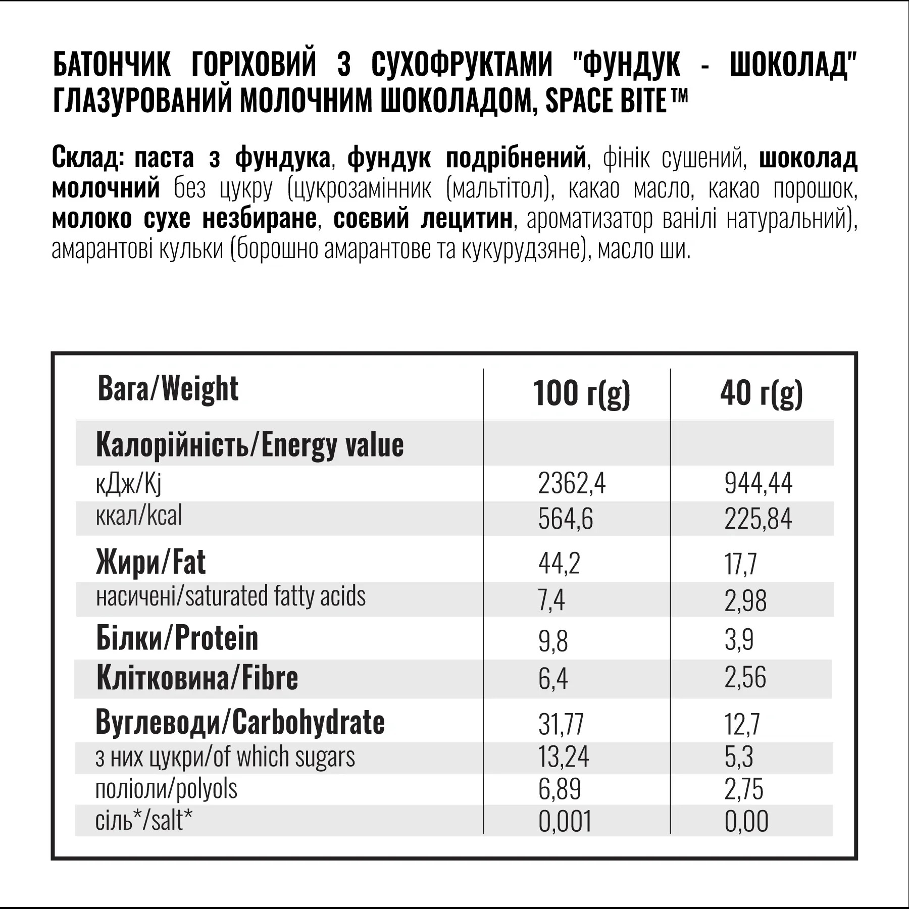 Space Food Батончик Space Bite - 40 г - фундук-шоколад
