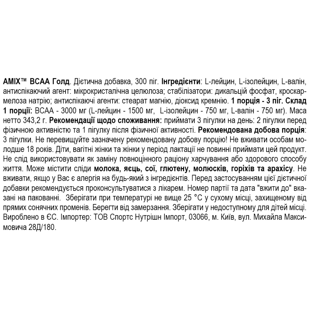 Amix™ BCAA 4:1:1 — это пищевая добавка с разветвленной цепью аминокислот (L-лейцин, L-изолейцин, L-валин) со специальным анаболическим соотношением 4:1:1 для L-лейцина.