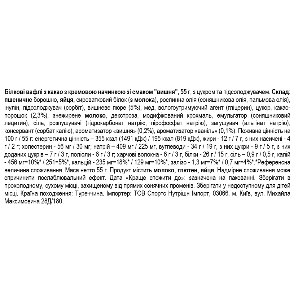Smarter Snacks Белковые вафли с какао с кремовой начинкой со вкусом "вишня" (Protein Cocoa Waffle) - 55г