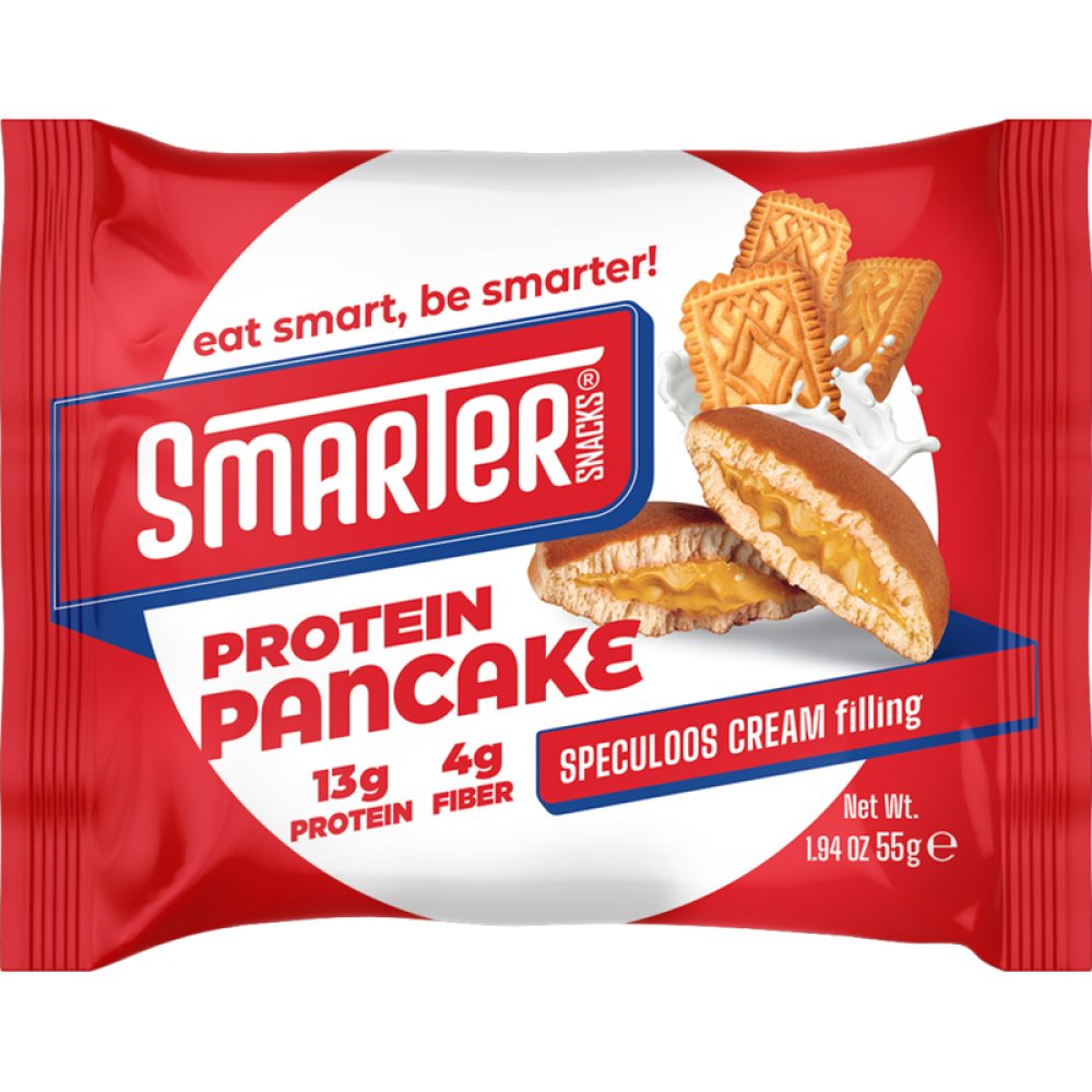 Smarter Snacks Protein Pancake — это готовый порционный продукт с мягкой текстурой блинчика и кремовой начинкой. Продукт содержит белок и пищевые волокна, что отражается в его нутриентном составе и позволяет использовать его как часть повседневного рациона.