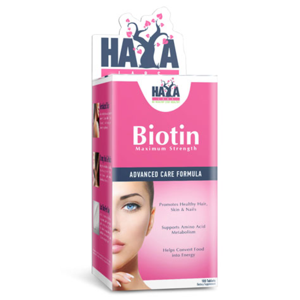 HAYA LABS BIOTIN MAXIMUM STRENGTH – это пищевая добавка, которая является важным продуктом для здоровья человека в целом. Биотин входит в группу витаминов группы В, хотя и не является витамином. Биотин широко известен своей важностью в клеточном развитии и его помощью в метаболизме жирных кислот, углеводов, глюкозы и аминокислот. Это кофермент, который действует в сочетании с витаминами. Биотин необходим для нервной системы и полезной микрофлоры кишечника, а еще важен для здоровья волос, ногтей и кожи, отчего получил название «витамина красоты».