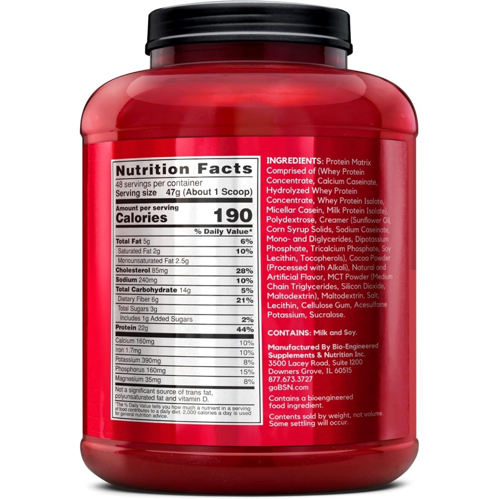 BSN SYNTHA-6- незаменимый протеин для любого режима питания и с учетом физических нагрузок, поскольку он разработан для различных видов активного образа жизни и диет. Это комплекс белков высшего качества с 22 г протеина на порцию, с лучшими вкусовыми качествами на рынке. Обеспечивает высокий стандарт качества протеина с превосходным вкусом благодаря нашей эксклюзивной технологии ароматизации. Основными инградиентами является протеиновая матрица (концентрат сывороточного протеина, изолят сывороточного протеина, казеинат кальция, мицеллярный казеин, изолят молочного протеина, яичный белок и глютаминовые пептиды), полидекстроза .
