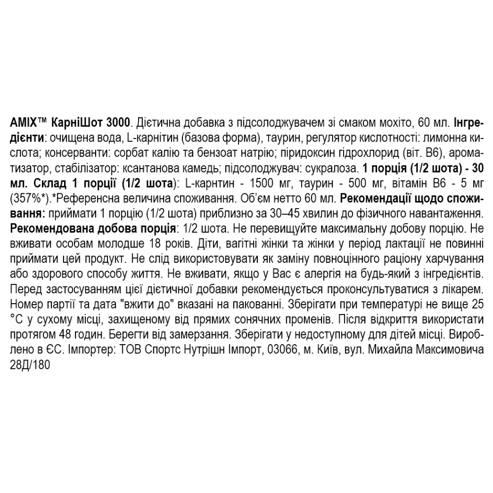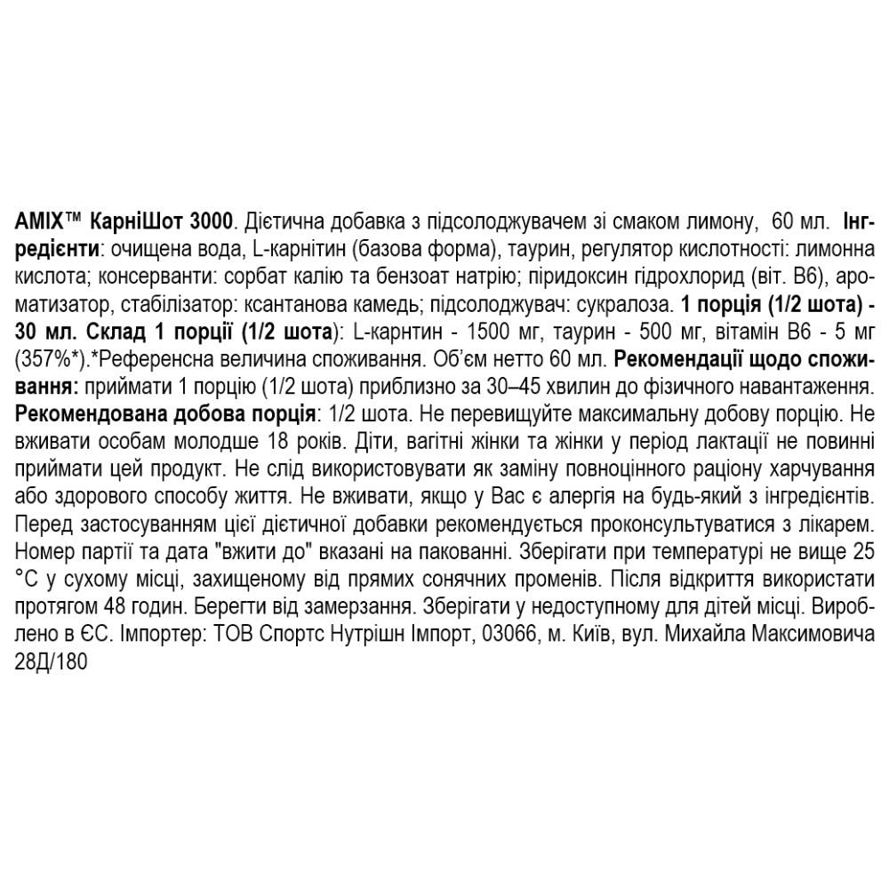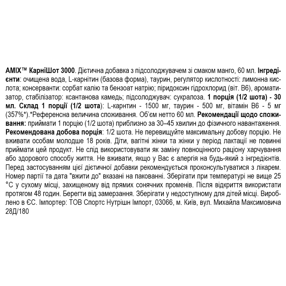 Состав Amix CarniShot 3000 - 60 мл