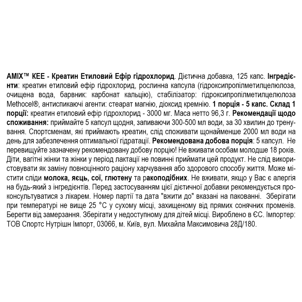 Creatine Ethyl Ester HCL (CEE) представляет собой моногидрат креатина с присоединенным эфиром. Сложные эфиры – это органические соединения, которые образуются в результате этерификации – реакции карбоновой кислоты и спиртов. С помощью этилового эфира креатина, молекулы легко транспортируются через липидный (жировой) слой мембраны кишечника и мышц, способствуя лучшему всасыванию. Скорость абсорбции при этом превосходит любую другую форму креатина.