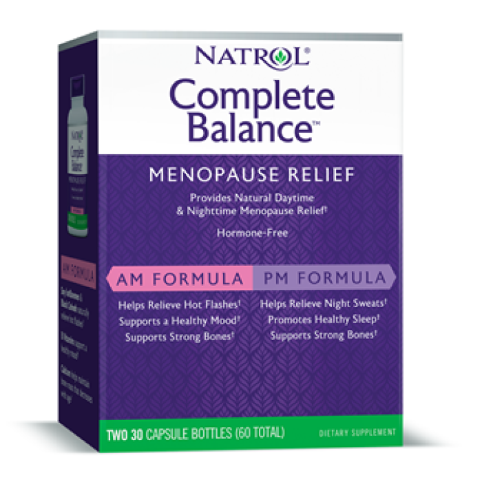 Natrol Complete Balance AM / PM для менопаузы насыщен соей, кальцием, черным кохошем и витаминами. Целенаправленная формула, она может помочь уменьшить приливы, ночную потливость, перепады настроения и другие симптомы менопаузы. Кроме того, он также может поддерживать баланс гормонов у женщин в пременопаузе.