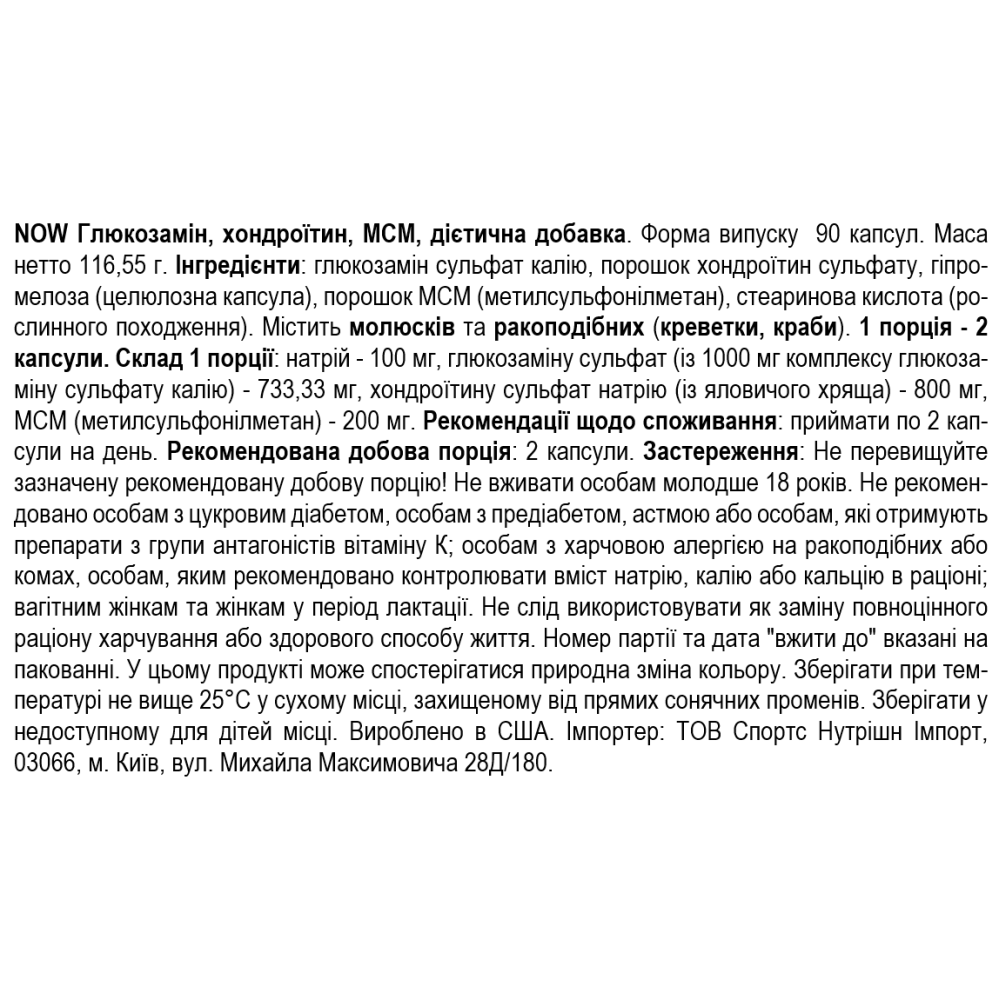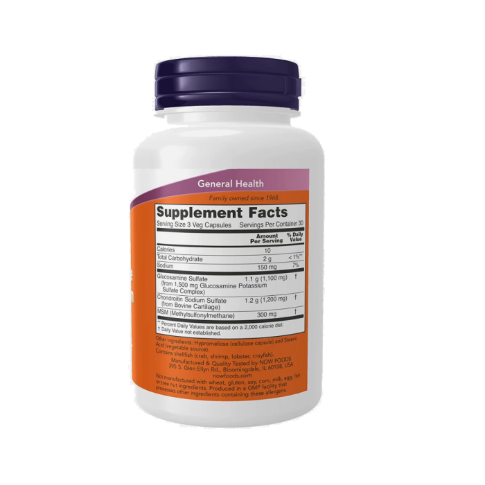 Состав NOW Foods Glucosamine Chondroitin MSM - 90 кап