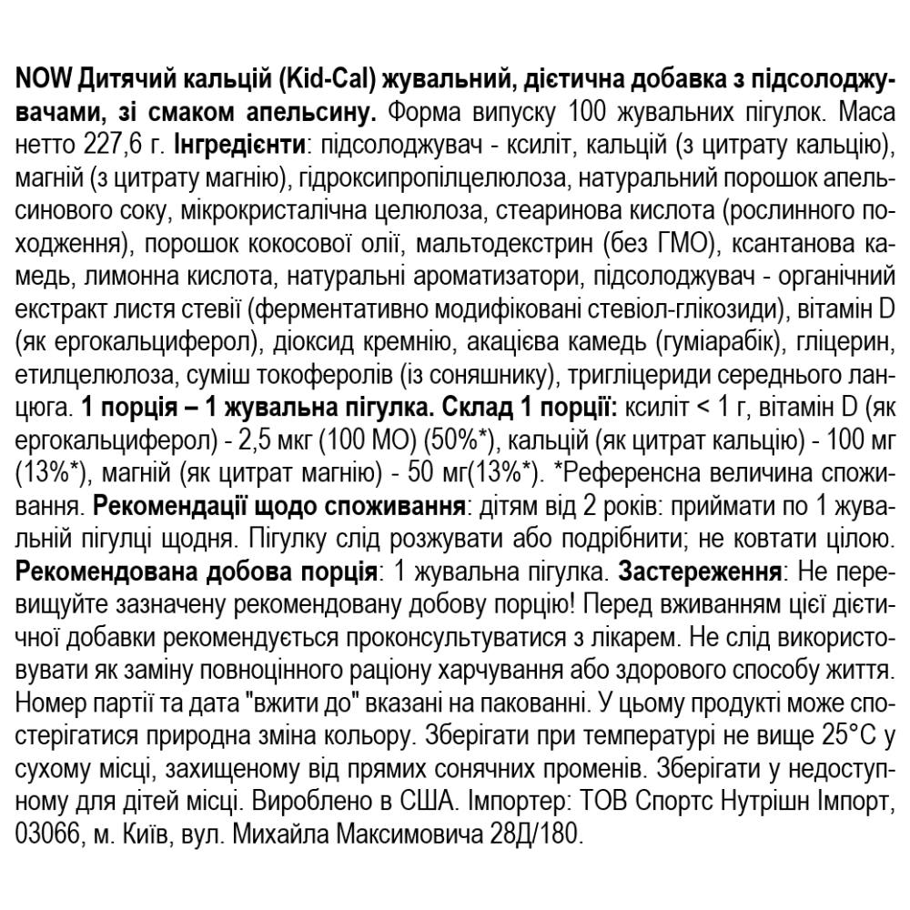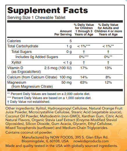 Состав NOW Foods KID-Cal Mag VitD - 100 жев таб