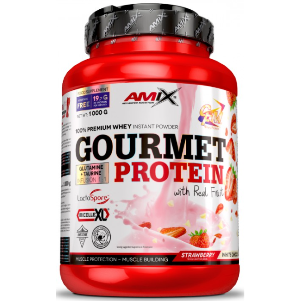 Amix ™ Gourmet Protein - это кремообразный протеиновый коктейль с прекрасным вкусом и настоящими кусочками фруктов. Это невероятный порошкообразный продукт для приготовления коктейлей, разработанный и разработанный Amix ™, состоящий из лучших источников белка на рынке, и в который были добавлены настоящие кусочки обезвоженных фруктов, чтобы доставить удовольствие самым избранным гурманам.