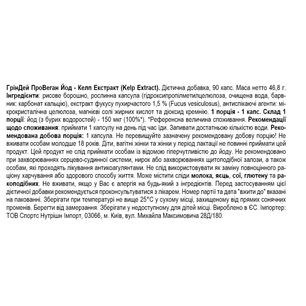 Состав Amix GreenDay ProVegan Natural Iodine Kelp Extract - 90 веган капс