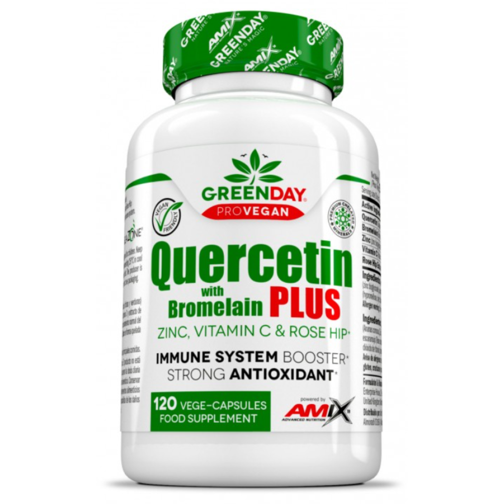 - Бромелайн, содержащийся в Quercetin Plus Amix GreenDay, оказывает противовоспалительное действие и полезен при инфекциях верхних дыхательных путей.