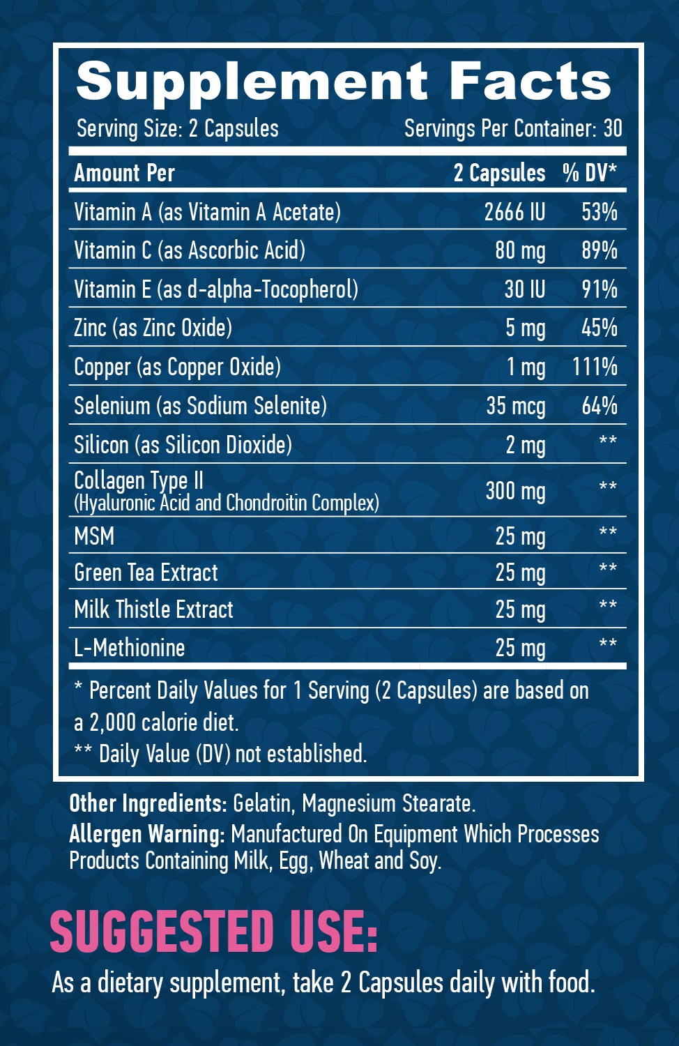 - МСМ – отвечает за поддержание хорошего состояния, а также эластичности кожи и сосудов. Обеспечение клеточных стенок проницаемостью для питательных веществ и способностью выводить токсины.