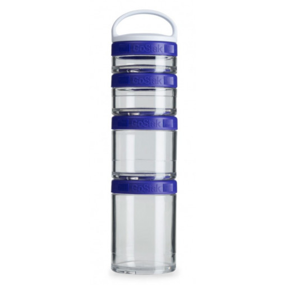 GoStak это разработка разумных систем для переноса, в котором Вы сможете переносить, например таблетки или перекусы, если Вы на диете ли даже завтраки. Это универсальный контейнер из специального пищевого пластика без запаха с плотно закрывающимися отсеками, которые не займут много места в Вашей сумке и обеспечат Вашу комфортную тренировку или диетическое питание. Крышки на отсеках оснащены специальными соединениями Twist-N-Lock, который позволяет закрыть отсеки плотно одним поворотом. Кроме того Вы можете легко поместить контейнер внутрь BlenderBottle Classic или SportMixer, что позволит еще больше сэкономить места в Вашей сумке.