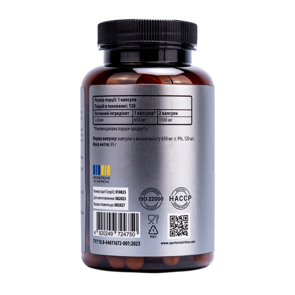 Состав Sporter L-Lysine 650 мг - 120 капс