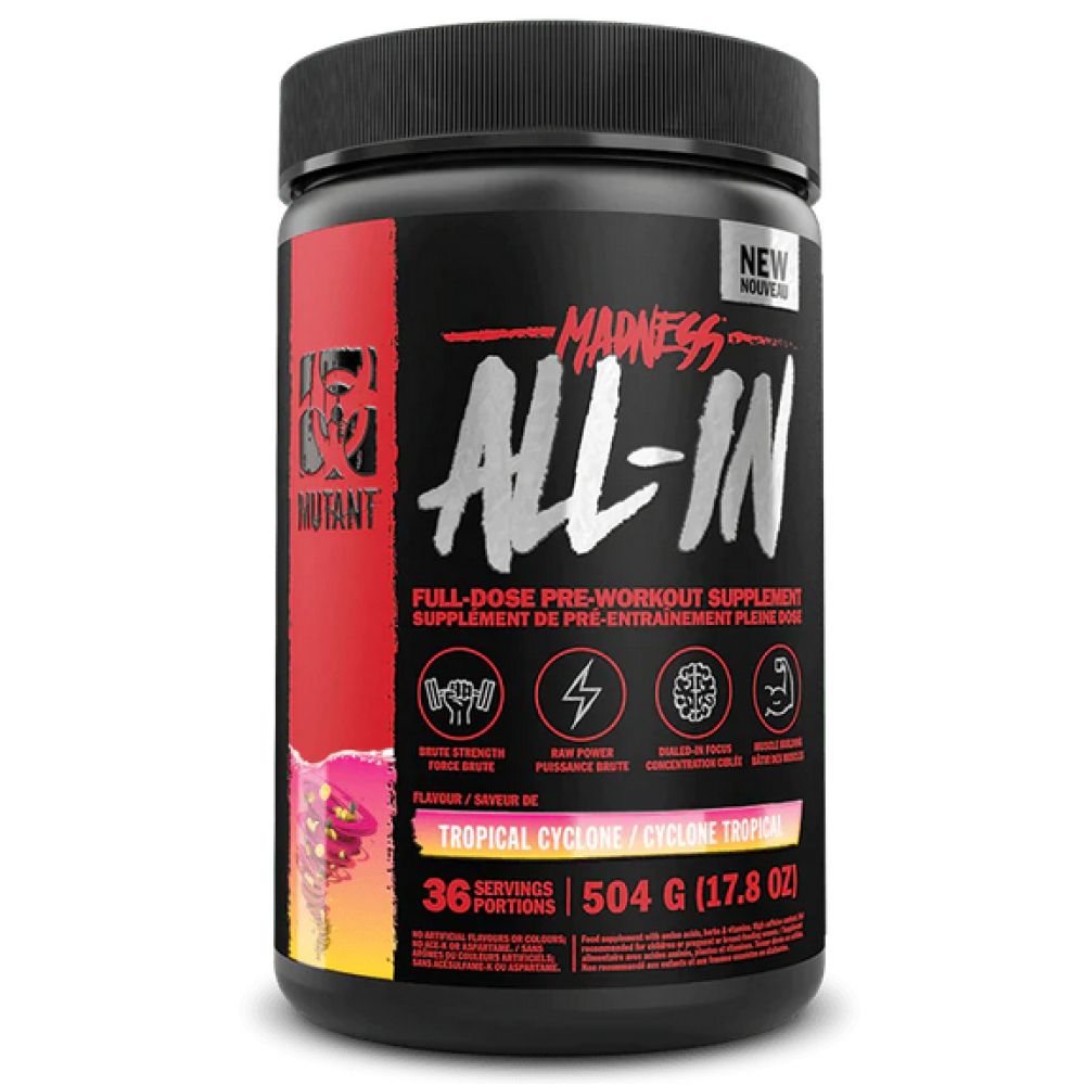 Mutant Madness ALL-IN - это мощный предтренировочный комплекс, разработанный для спортсменов, которые стремятся к максимальной производительности и эффективности на тренировках. Он содержит широкий спектр ингредиентов, которые помогают улучшить концентрацию, энергию, силу и выносливость.