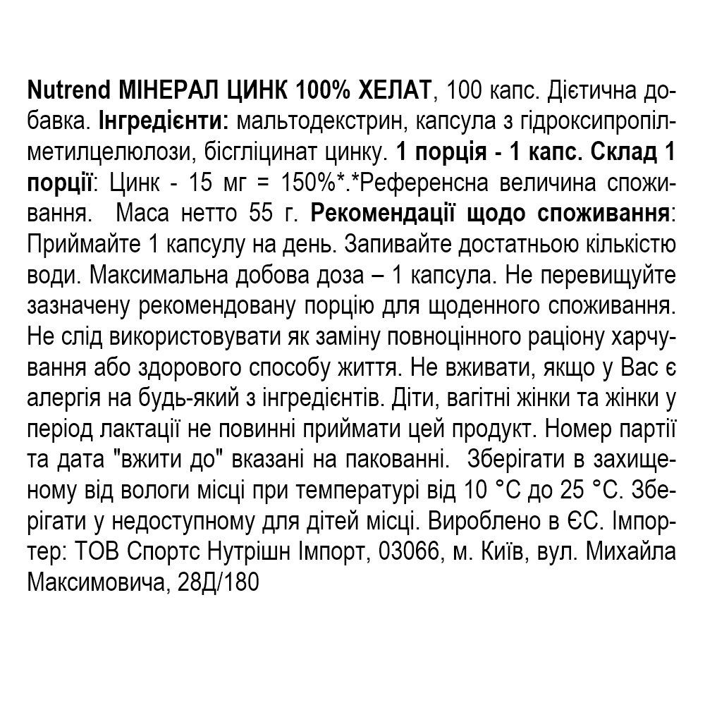 Состав Nutrend Mineral Zinc 100% Chelate - 100 капс