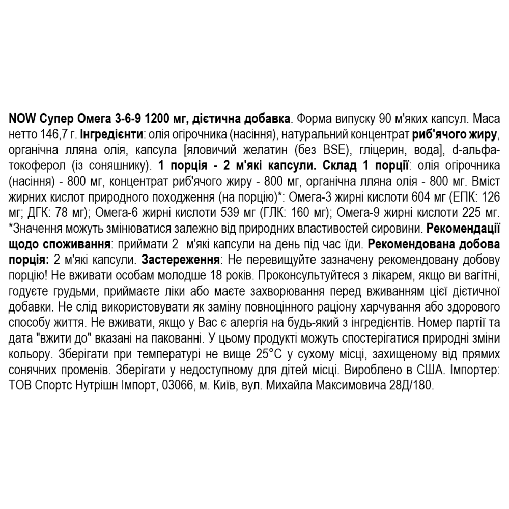 Состав NOW Foods Super Omega 3-6-9 1200 мг