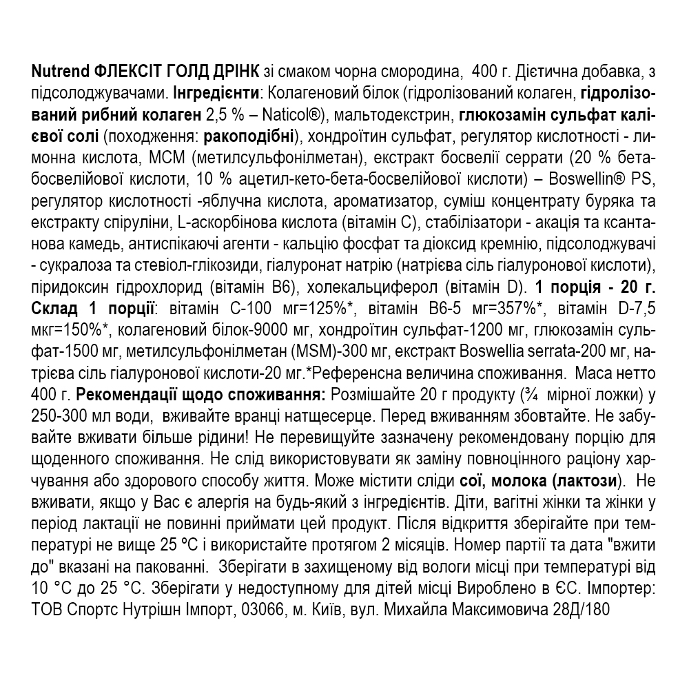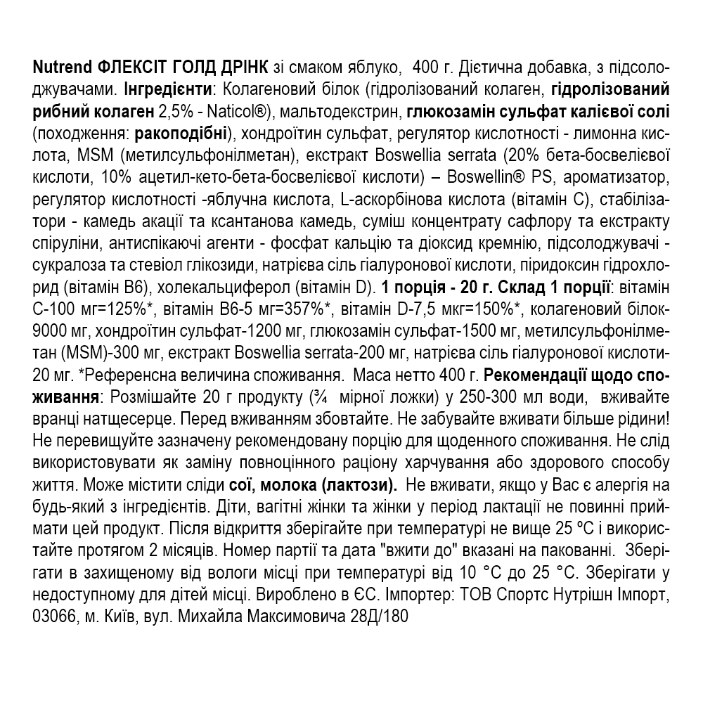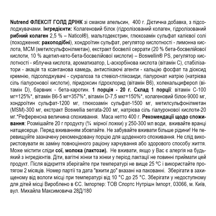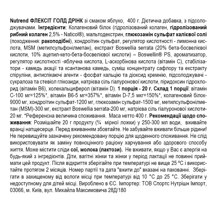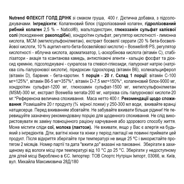 Состав Nutrend FLEXIT DRINK GOLD 400 g