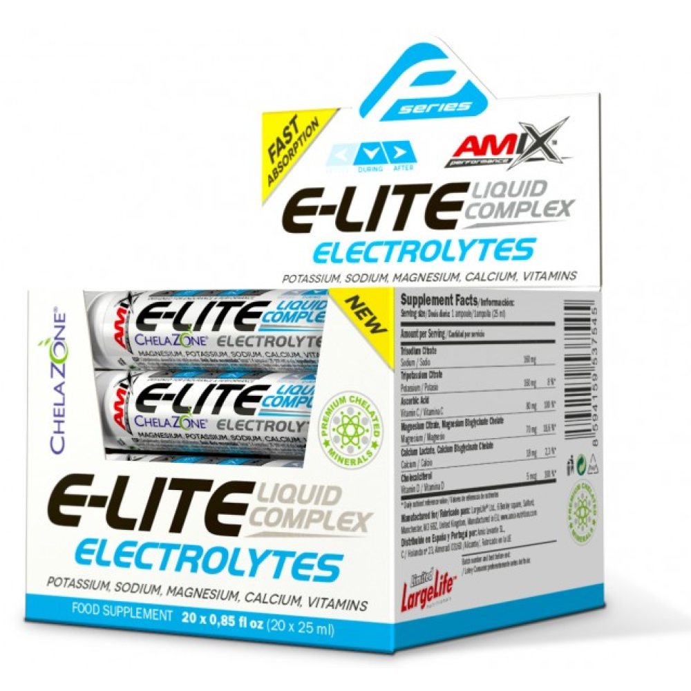 E-lite Electrolytes Concentrate в жидкой форме - это пищевая добавка, которая содержит сложные и важные электролиты и витамины. Электролит разработан для физически активных и спортивных людей любого уровня подготовки. Его жидкая форма позволяет ему легче проникать в кровь, потому что он немедленно всасывается и, таким образом, может быстрее выполнять свою функцию. Поскольку время всасывания сокращается, можно избежать любых проблем с пищеварением. Этот препарат богат широким минеральным составом, что позволяет поддерживать здоровое состояние мышц, а также нервно-мышечное волокон.