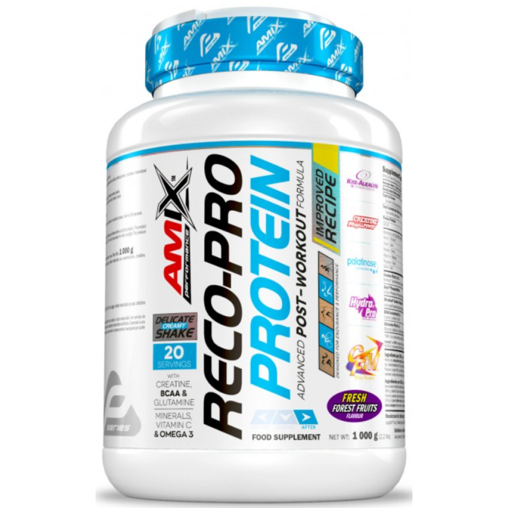 Высококачественный  протеиновый комплекс  на основе  протеинового изолята CFM® . Обеспечивает максимальное питание мышц, сокращает период регенерации и устраняет болезненность мышц после тренировки. Сочетание  нескольких источников белка  делает добавку хорошо сбалансированной и эффективно выполняет свою роль, адаптируясь к требованиям различных спортсменов. Amix Reco-Pro Protein заботится о здоровье иммунной и пищеварительной систем – содержит белковые фракции, т. пищеварительной системы и оказывают положительное влияние на иммунитет пищеварительной системы.