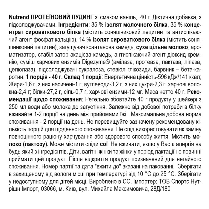 Состав Nutrend Протеиновый пудинг Protein Pudding - 40 г - ваниль