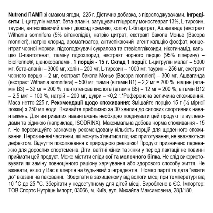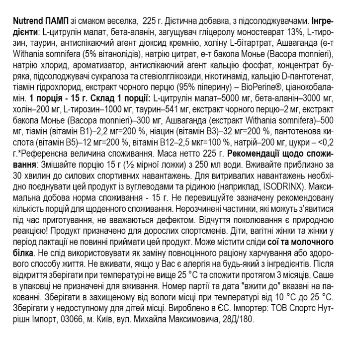 Nutrend PUMP – это не просто предтреник, это ваш ключ к новым спортивным достижениям. Попробуйте и почувствуйте, как ваши тренировки выходят на новый уровень!