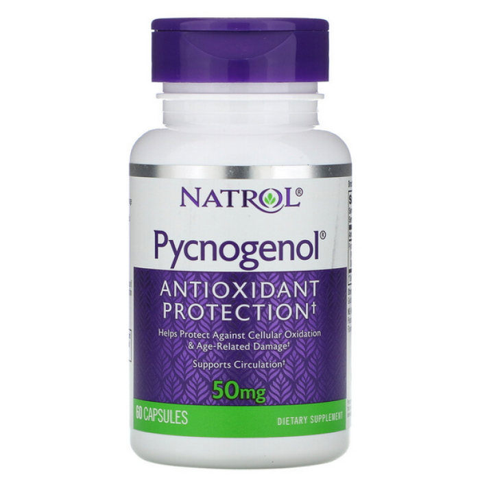NATROL Pycnogenol 50mg - 60 капс-мощный антиоксидант и противовоспалительное средство из экстрактов морской французской сосны.Pycnogenol получен из коры сосны, которая произрастает в экологически чистом районе, на закрытой территории, под контролем биологов возле моря, на юго-западе Франции.При выращивании данного вида сосны не используются никакие химические препараты и геомодифицированные продукты.