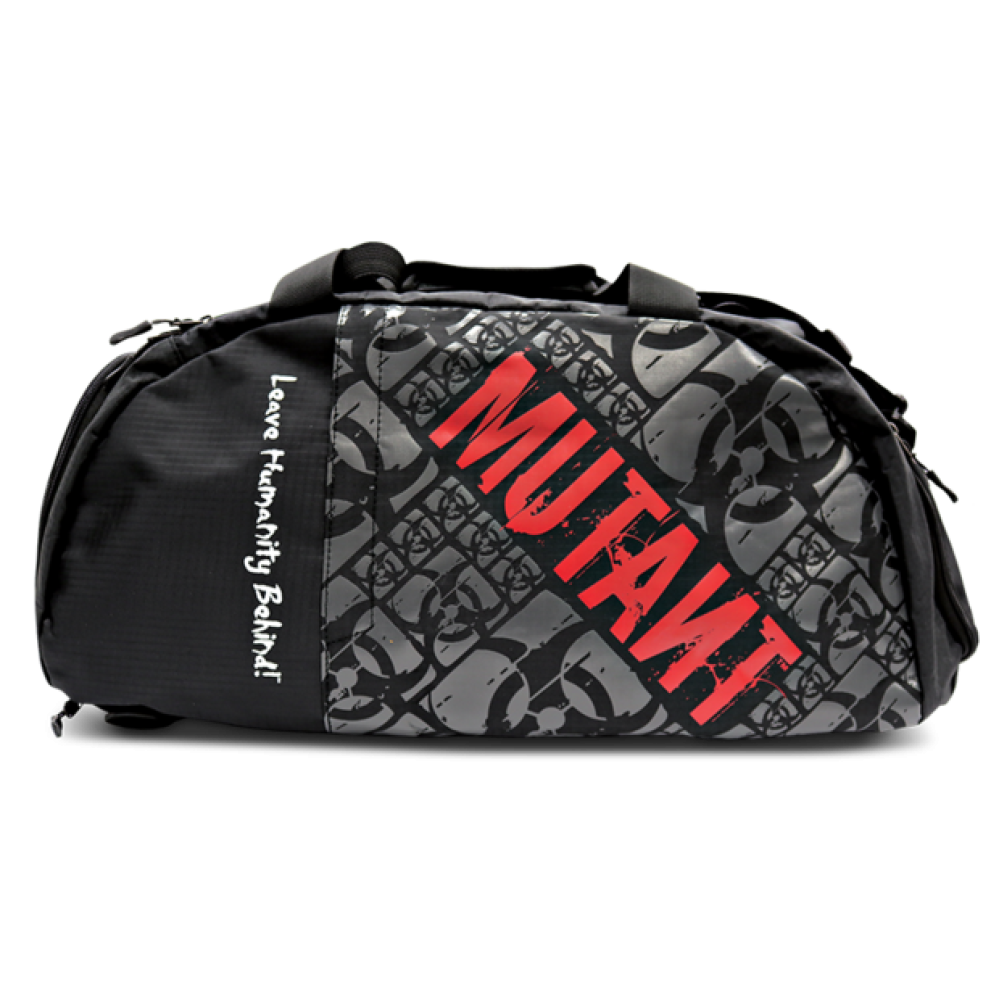 Mutant Gym Bag Чёрная спортивная сумка выпущена эксклюзивным тиражом имеет 2 боковых кармана на молнии ,встроенную липучку для мобильного телефона, большое отделение на молнии с дополнительным отделением в переднем кармане .