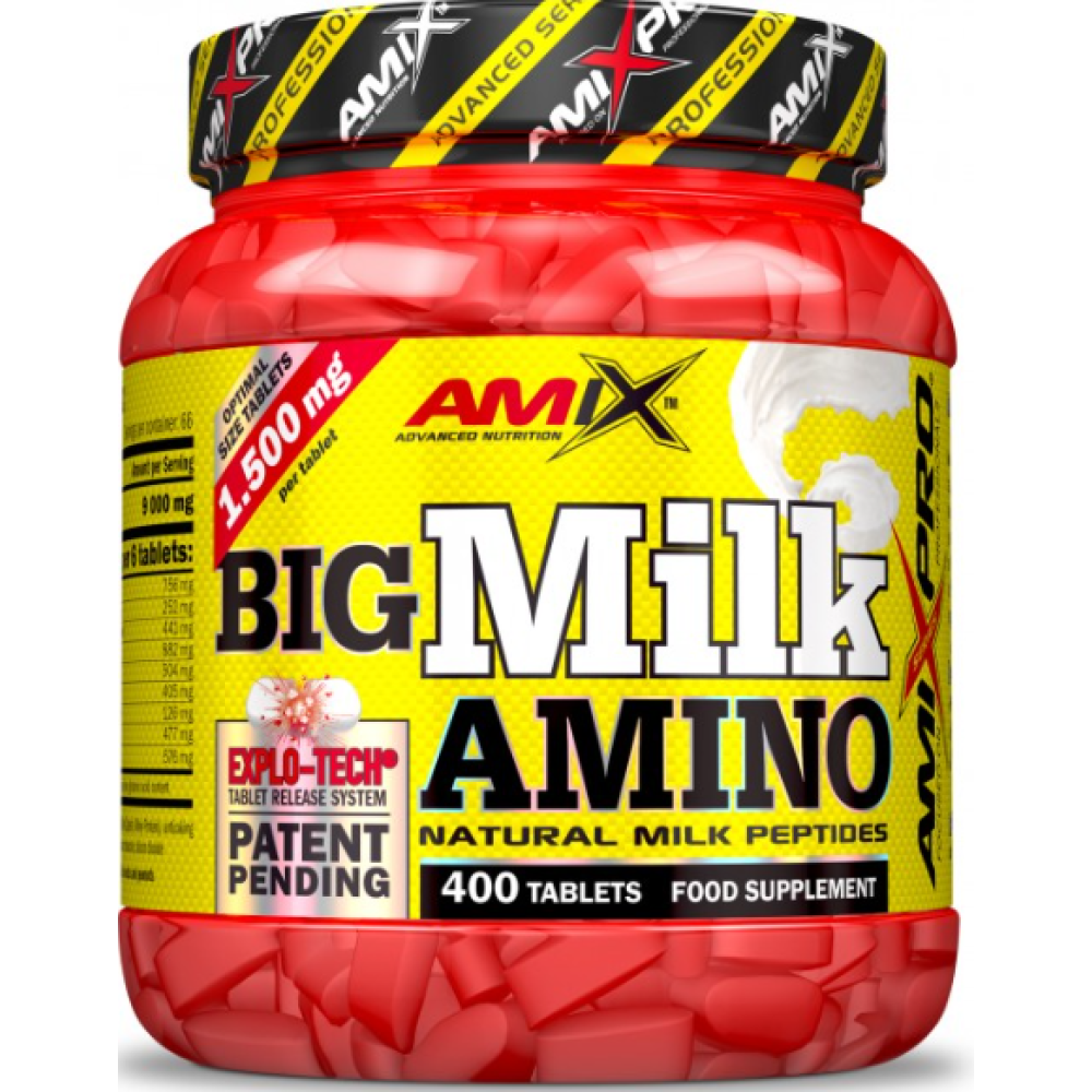 Amix™ Big Milk Amino – це спеціальна добавка у зручній таблетованій формі з ізоляту молочного білка, отриманого з ультрафільтрованого знежиреного молока. Він містить суміш міцелярного казеїну та білків молочної сироватки у тому ж співвідношенні, що і в молоці (казеїн 80% та сироватка 20%).