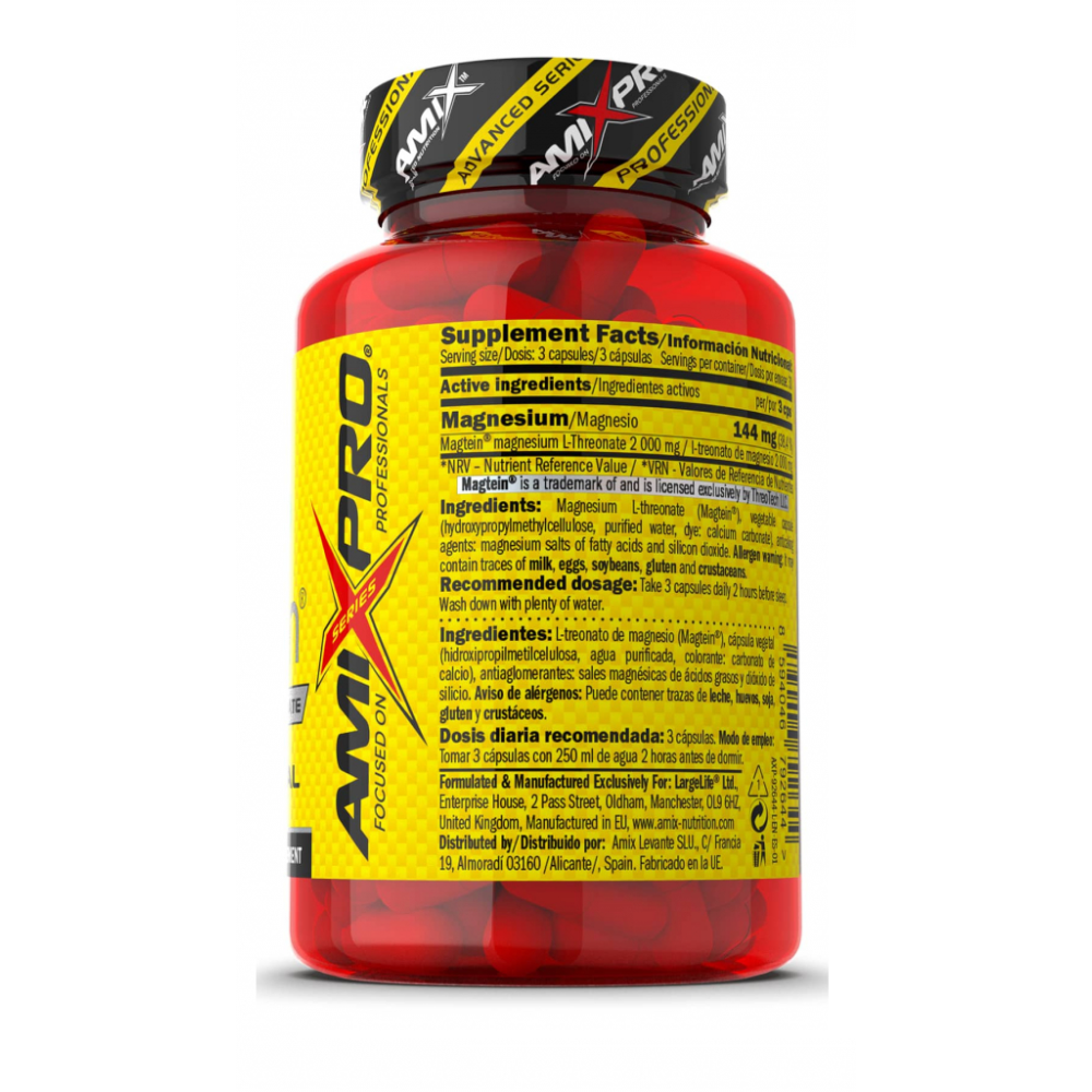 AmixPro Magnesium L-Threonate Magtein® — харчова добавка із запатентованою формою магнію Magtein® (L-треонат магнію). Продукт створений для тих, хто прагне доповнити раціон сучасною формою магнію та приділяє увагу підтримці загального балансу організму.