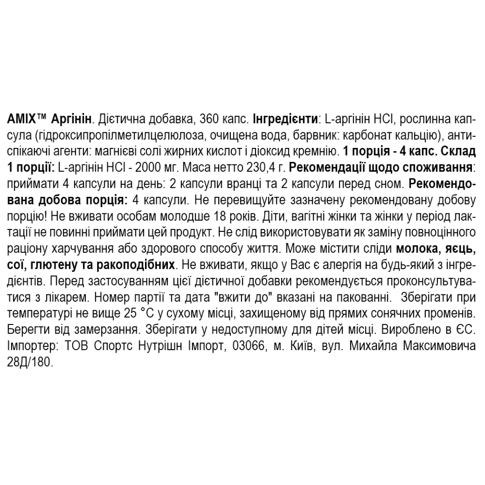 Склад Amix Arginine