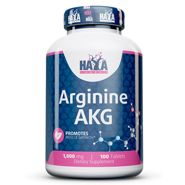 Haya Labs Arginine AKG 1000 mg – це харчова добавка з альфа-кетоглутаратом аргініну (AAKG), який є сіль амінокислоти аргініну та альфа-кетоглутарової кислоти. Ця амінокислота нейтралізує вплив вільних радикалів, усуває шкідливий аміак і має сильну антикатаболічну дію, оскільки захищає м'язову масу від пошкоджень після високоінтенсивних тренувань. Аргінін є однією з найважливіших амінокислот для бодібілдерів та спортсменів, оскільки стимулює зростання сухої м'язової маси, а його компоненти є проміжними ланками в метаболізмі оксидів азоту