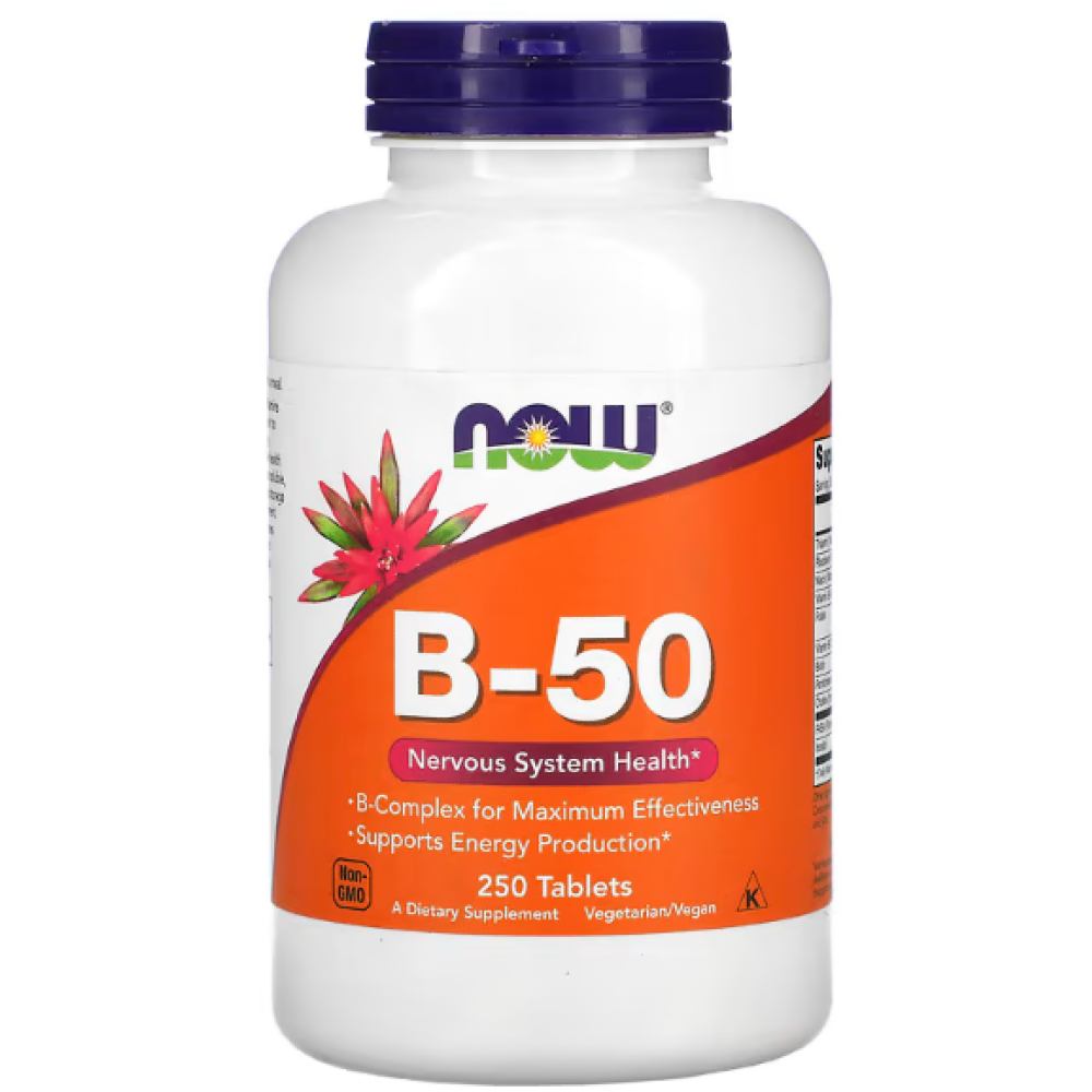 Vitamin B-50 NOW Foods – ефективний засіб для поповнення комплексного дефіциту вітамінів групи В. Ці мікроелементи відіграють важливу роль у роботі всіх систем організму, починаючи від якості шкіри, волосся та нігтів та закінчуючи нервовою, серцево-судинною та імунною системами.
