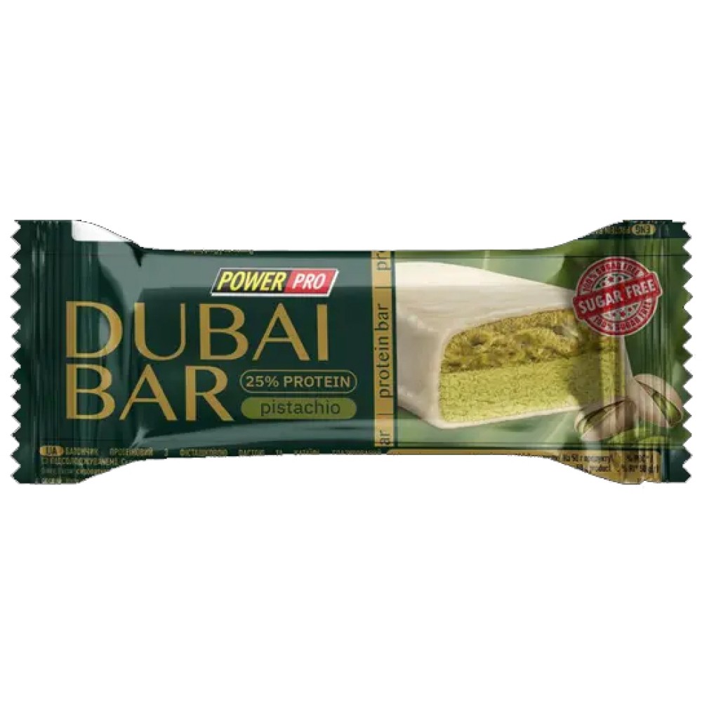 PowerPro Dubai Bar — це поєднання близькосхідних кондитерських традицій та сучасних стандартів нутриціології. Натхненний знаменитим десертом, цей батончик пропонує унікальний сенсорний досвід без використання доданого цукру.