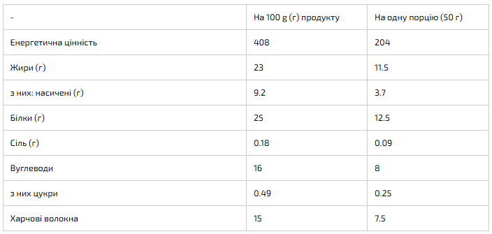 - Контроль вуглеводного навантаження: Відсутність цукру робить продукт придатним для інтеграції в раціони з обмеженим вмістом простих вуглеводів, а також для осіб, які стежать за динамікою рівня глюкози.
