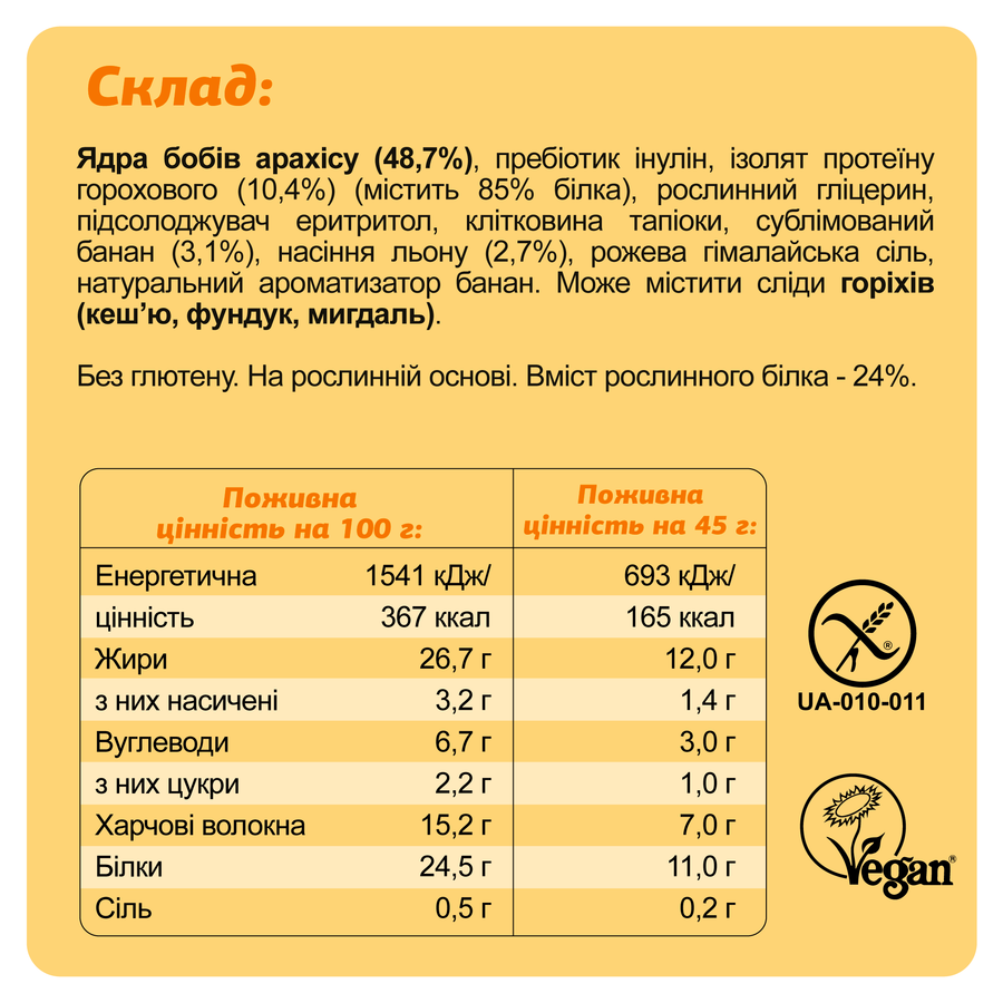 *Батончик не містить доданого цукру. Містить лише природні цукри з рослинних інгредієнтів у мінімальних кількостях.