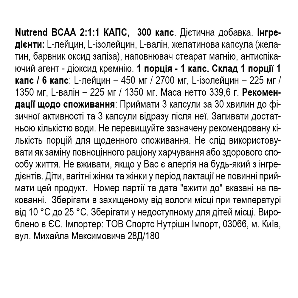 Склад Nutrend BCAA 2:1:1 - 300 капс