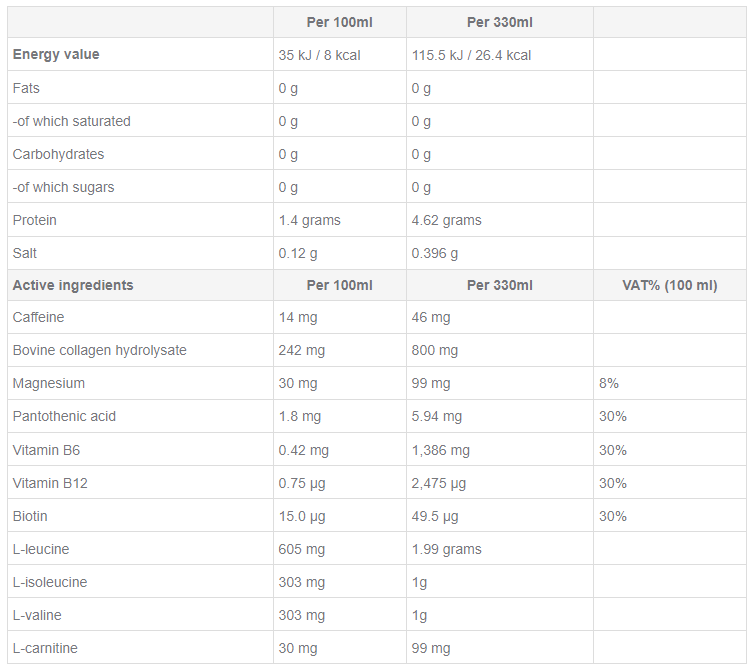 - Підтримка амінокислотного балансу: L-лейцин, L-ізолейцин та L-валін (BCAA) у класичному співвідношенні 2:1:1, що містяться у складі, є важливими компонентами, які можуть брати участь у процесах обміну речовин у м'язових тканинах.