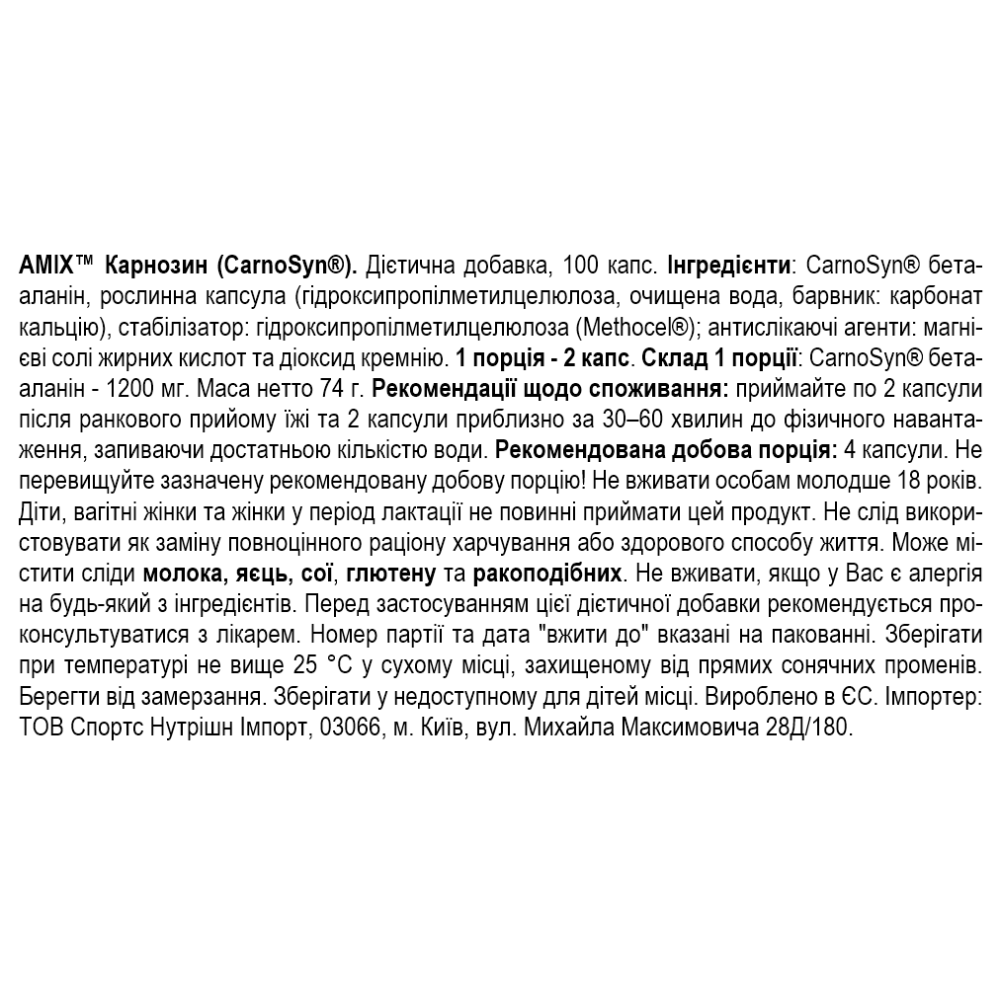 Склад Amix Beta Alanine CarnoSyn 600mg 100 капс