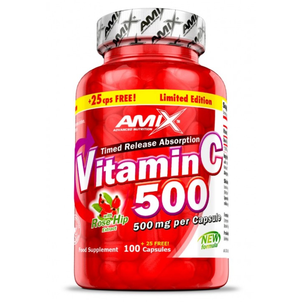 Amix Vitamin C + ROSE HIPS 500MG - це спеціально створена комбінація вітаміну С та екстракту шипшини. Рекомендується для людей, які дбають про здоров'я та правильне функціонування організму.
