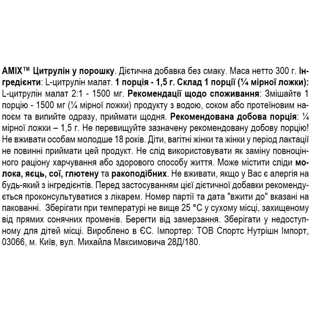 - Прискорення відновлення: Amix CitruLyn сприяє зниженню м'язового болю і втоми після фізичних навантажень, прискорюючи процес відновлення і знижуючи ризик перетренованості.