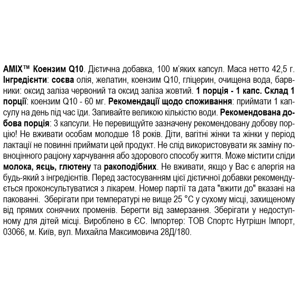 Склад Amix Coenzyme Q10 60mg - 100 софт гель