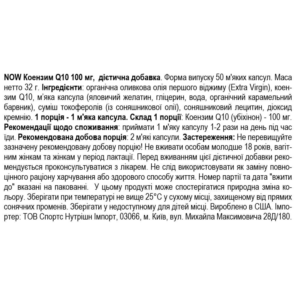 Склад NOW Foods CoQ10 100 мг 50 софт капс