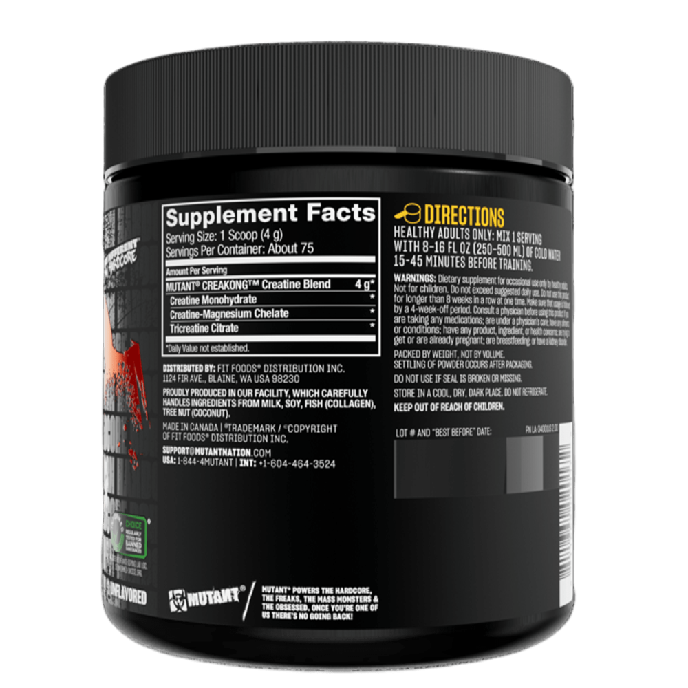 MUTANT CREAKONG - це вдосконалена формула креатину, що складається з трьох кращих форм креатину (креатин моногідрат, три креатин цитрат, креатин-магній хелат), що є у продажу.