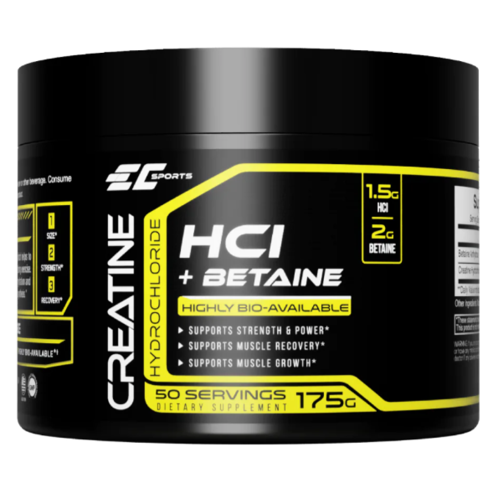 EC Sports Creatine Hydrochloride – це форма креатину з високою біодоступністю. Це допомагає збільшити м'язову витривалість, потужність та силу. Гідрохлорид креатину забезпечує підвищене та швидше поглинання води м'язовою тканиною для швидшого відновлення. До цієї формули також додано безводний бетаїн, який допомагає збільшити потужність і силу під час тренувань. Кожен контейнер містить 50 порцій!