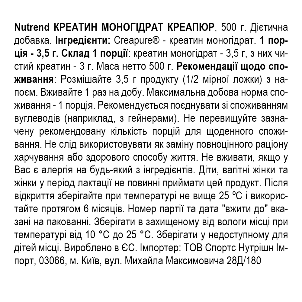 Склад Nutrend Creatine monohydrate creapure - 500 г