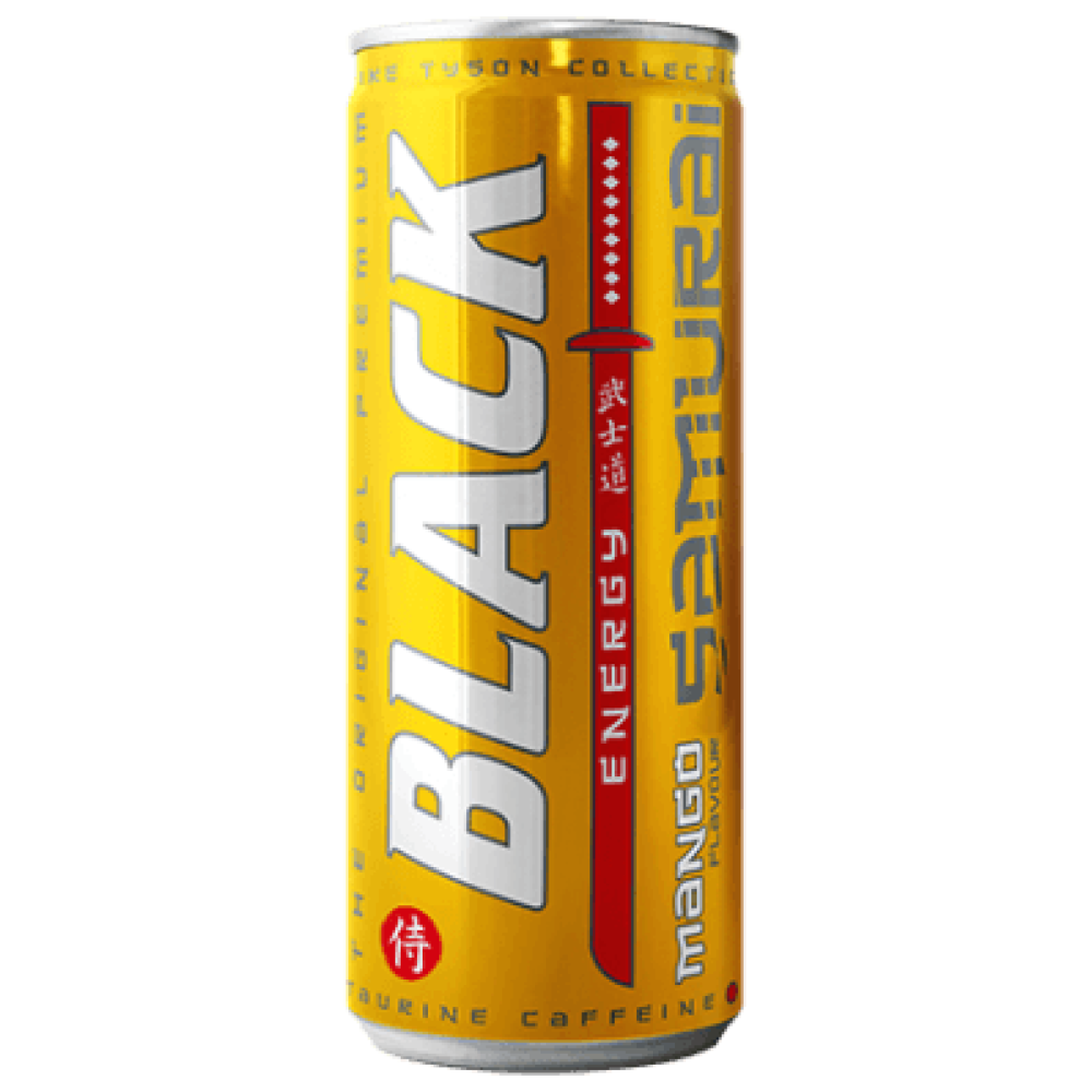 BLACK ENERGY SAMURAI MANGO - унікальний енергетичний напій, що відрізняється винятковим смаком соковитого манго, з додаванням вітамінів (ніацин, пантотенова кислота, вітамін В6, вітамін В12), що забезпечує миттєвий приплив енергії. Оригінальний смак, що ховається в жовтій банці, відображає його вишуканий, екзотичний характер. Із BLACK ENERGY ваші можливості вийдуть на новий рівень.