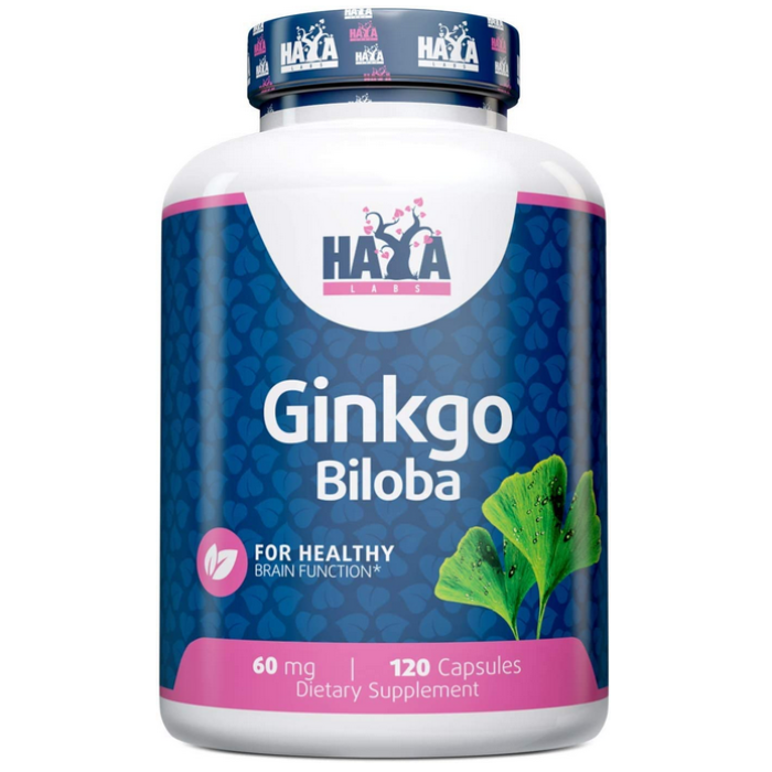 Haya Labs Ginkgo Biloba 60 mg – це харчова добавка з екстрактом гінкго дволопатевого, яка діє як справжній бустер перед тренуванням. Активна речовина у формулі покращує пам'ять та концентрацію, стимулює кровообіг та підвищує фізичну витривалість.